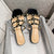 - ���YE-CATCHING DESIGN���oft Vegan Leather upper with studs make this flat sandals more chic and fashinable, open square toe slides designed with rivets surrounding sole and criss-cross straps.