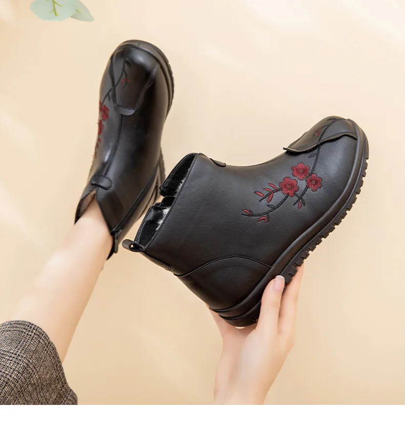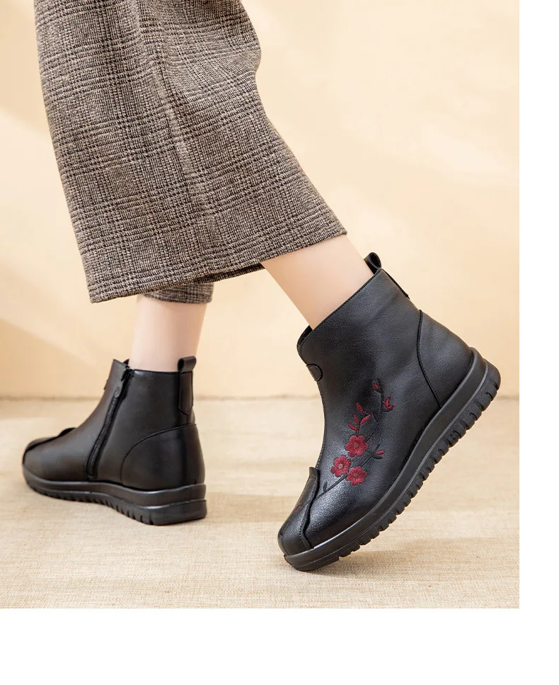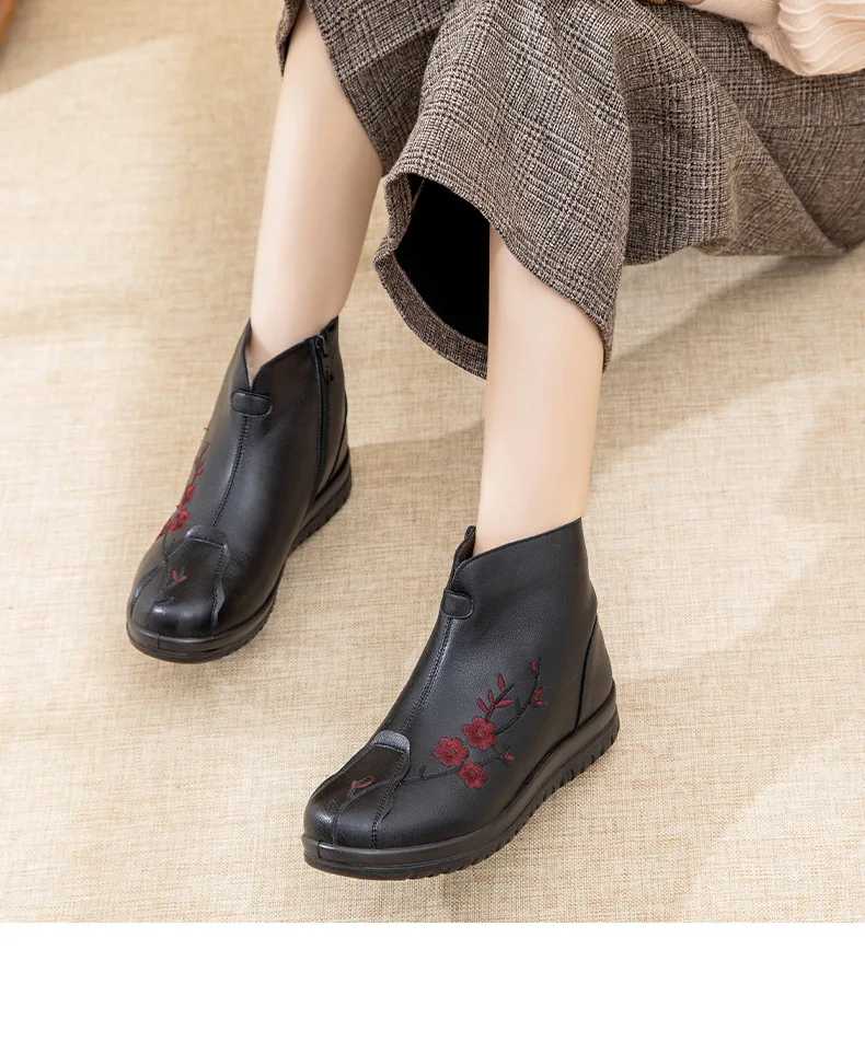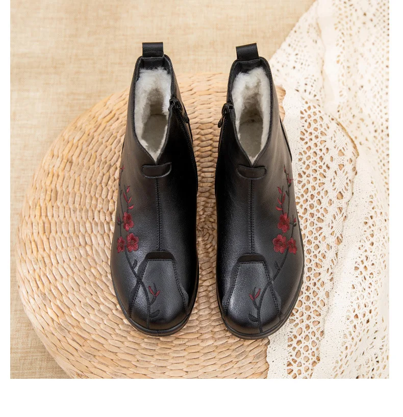 Woman Snow Boots 2022 Embroidered Genuine Leather Fashion Boots