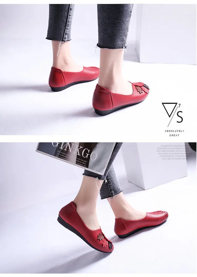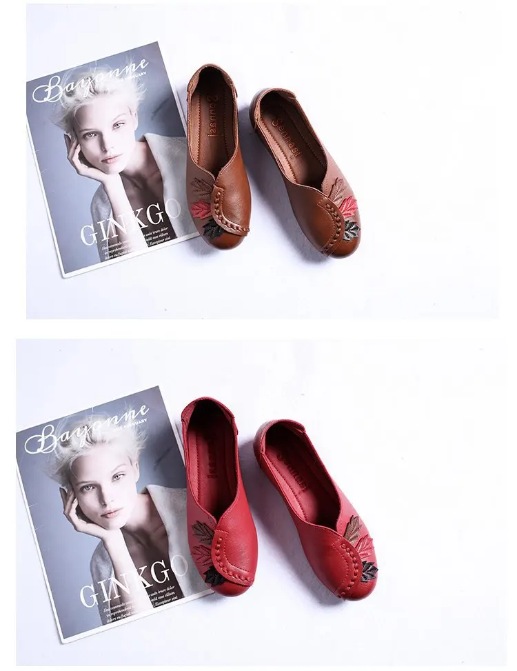 Women Ballet Flats Slip on Loafers Summer Moccasins Female Genuine Leather Shoes