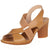 Dress sandal featuring open toe strap with adjustable ankle strap and a stacked wood look block heel. Quality faux leather design. Great comfort and style.